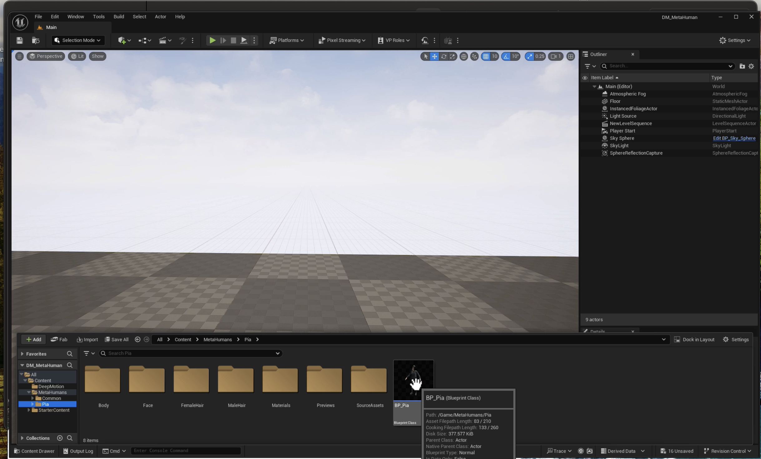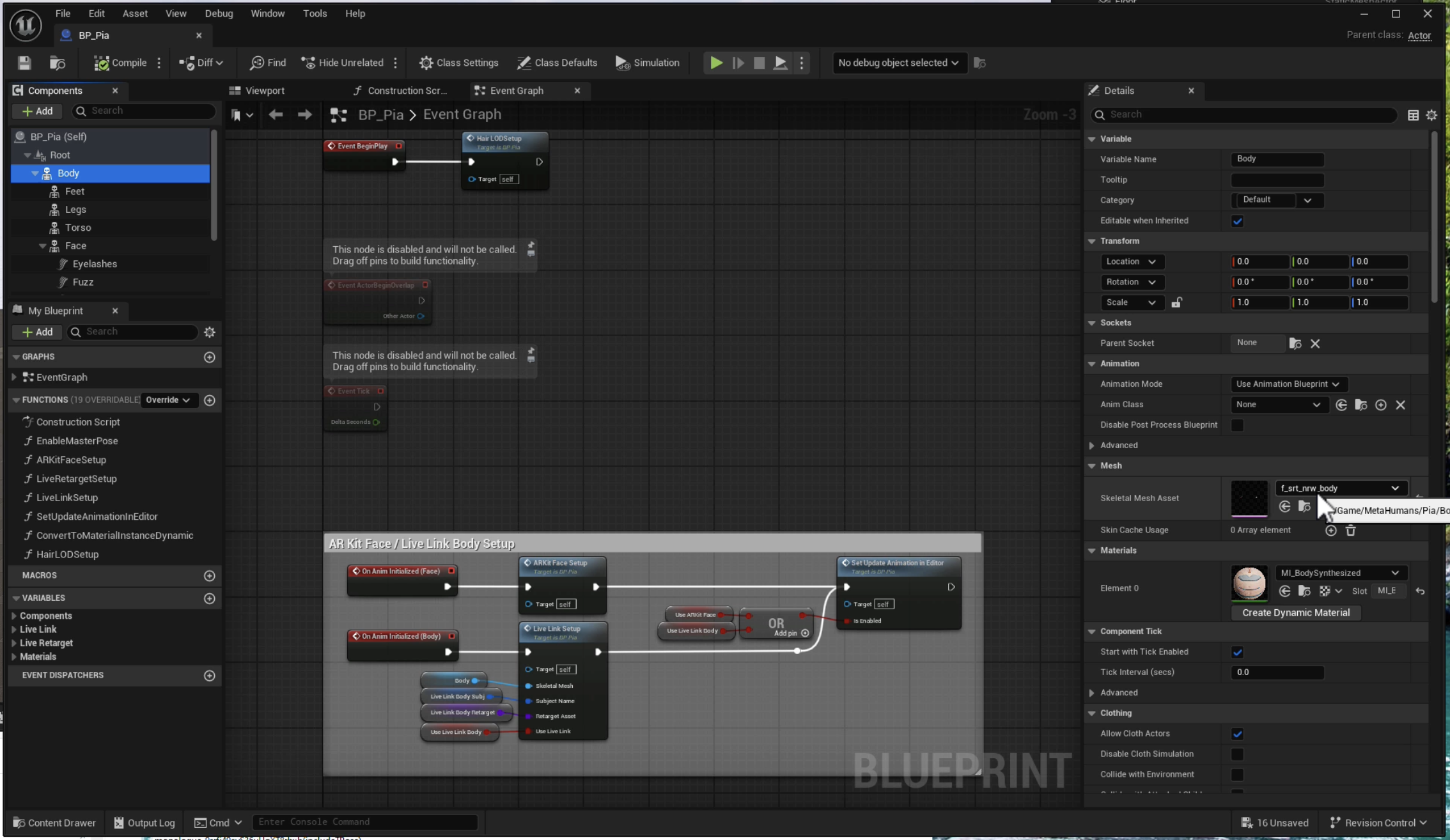 Open the MetaHuman blue print