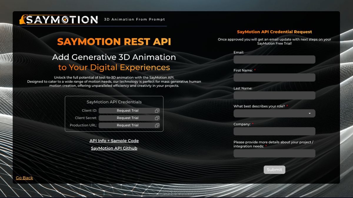 SayMotion API access is currently limited to verified partners. Please sign up for consideration!